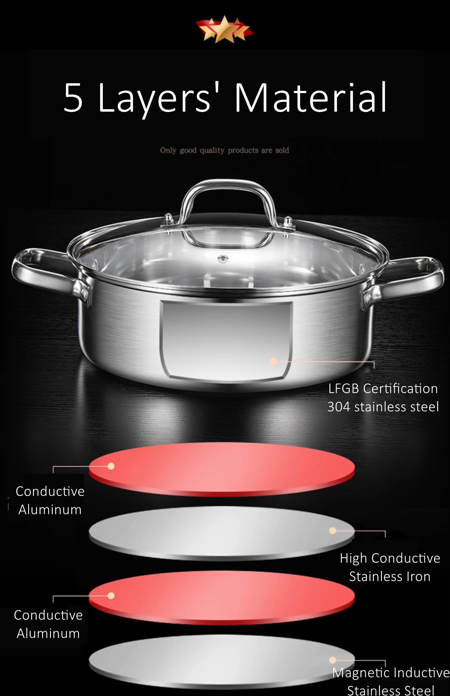 LFGB Certification Ultra Thick 304 Stainless Steel 25.8cm Kitchen Stewpot Temper
